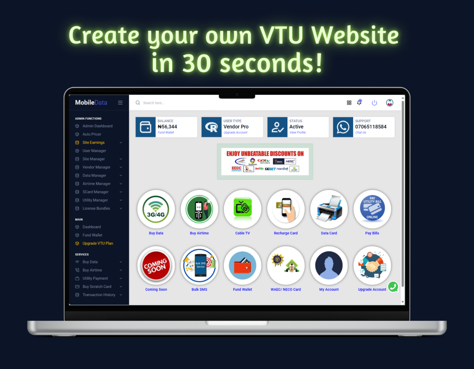 VTU Business remains one of the most lucrative online business anyone can venture into; however, creating a VTU website can be a daunting task, especially if you have limited technical knowledge or time. But with the help of our VTU Portal Creator, you can now create your own VTU website in just 3 minutes. We run a user-friendly platform that allows you to easily build and customize your VTU website, without the need for any coding or design skills. In this article, I will guide you through the step-by-step process of creating a VTU website, and how it can benefit your business or organization. Plus, I will also show you how to carry-out seamless transactions. So, if you're ready to take your VTU business to the next level, keep reading! The Benefits of building a VTU website using our VTU Portal Creator Our VTU Portal Creator is incredibly user-friendly and does not require any technical knowledge or coding skills. This means that even if you are a beginner, you can easily create a professional-looking VTU website in just a matter of minutes. Our platform also offers a wide range of customization options, allowing you to personalize your website to suit your brand identity and business needs. You can easily customize the look, feel, and images to create a unique and visually appealing website. In addition, our VTU Portal Creator integrates seamlessly with Service Providers, making it easy for your customers to complete transactions directly on your website such as buying Data, Airtime VTU, Airtime Recharge Cards, Paying Bills, Buying Exam Cards, etc. This eliminates the need for manual data entry and streamlines the process, enhancing the overall user experience. Free Domain Name: One of the initial hurdles in launching a VTU Portal is securing a domain name. With our system, every VTU website you create comes with a complimentary domain name, eliminating the need for separate domain purchases. This not only saves money but also simplifies the setup process. Free Hosting: Hosting costs can add up, especially as your VTU portal gains traction. Our VTU Portal Creator takes care of this concern by providing fully managed hosting for all created websites. Say goodbye to monthly hosting fees and technical worries. We ensure your website runs smoothly without additional expenses. Text Message Purchases: Our VTU Portal Creator introduces a groundbreaking feature that simplifies VTU service purchases. Users can buy VTU services by sending a straightforward text message to our AI-powered server. This text-based approach streamlines the process for both vendors and buyers, enhancing user convenience. No Start-up Deposit: Traditionally, vendors were required to deposit a fixed sum of money to start processing VTU requests. Our system shatters this barrier. You can jump into the VTU business without the burden of an initial financial deposit, offering financial freedom and flexibility. Easy Setup in Three Steps (No Coding Required): Our system is designed with user-friendliness in mind. You don't need to be a coding expert to create a VTU website. The entire setup process involves just three simple steps: Register, Provide the required information, Submit. Rewards for Marketers: Earn as You Refer! If you're a marketer, our VTU Portal Creator offers a unique opportunity. You can earn rewards by referring people to use the software. This means that not only can you build your VTU portal effortlessly, but you can also earn income by spreading the word about our system. Step-by-step guide on how to create a VTU website Now that you understand the benefits of using our VTU Portal Creator for your VTU website, let's dive into a step-by-step guide on how to create your website using this platform. Step 1: Sign up for a user account Click Here to Register or Login. You will be guided through a simple registration process where you will need to provide basic information about your business. Step 2: Provide the needed information Once you have successfully registered, browse through the menu in the dashboard and click on 'Become a Vendor'. You will be presented with a form which demands basic information such as the type of VTU Portal you need, a name for the website, preferred website address, a website design/theme, etc. Simply, provide these information and hit the SUBMIT button. Step 3: Preview and Publish your website As mentioned earlier, our system seamlessly builds a fully-functional VTU website in less than 1 minute. Hence, after clicking on the SUBMIT button, your VTU website will be created and delivered to you instantly. Once you have received your VTU portal, take some time to preview it, master its functionalities, and make any necessary adjustments. Once you are happy with the final result, then you are good to go. Congratulations! You have successfully created your VTU website in just a few simple steps. Now it's time to promote your website and start attracting customers to your VTU business. In subsequent, we will discuss some effective marketing strategies for your website. Stay tuned!